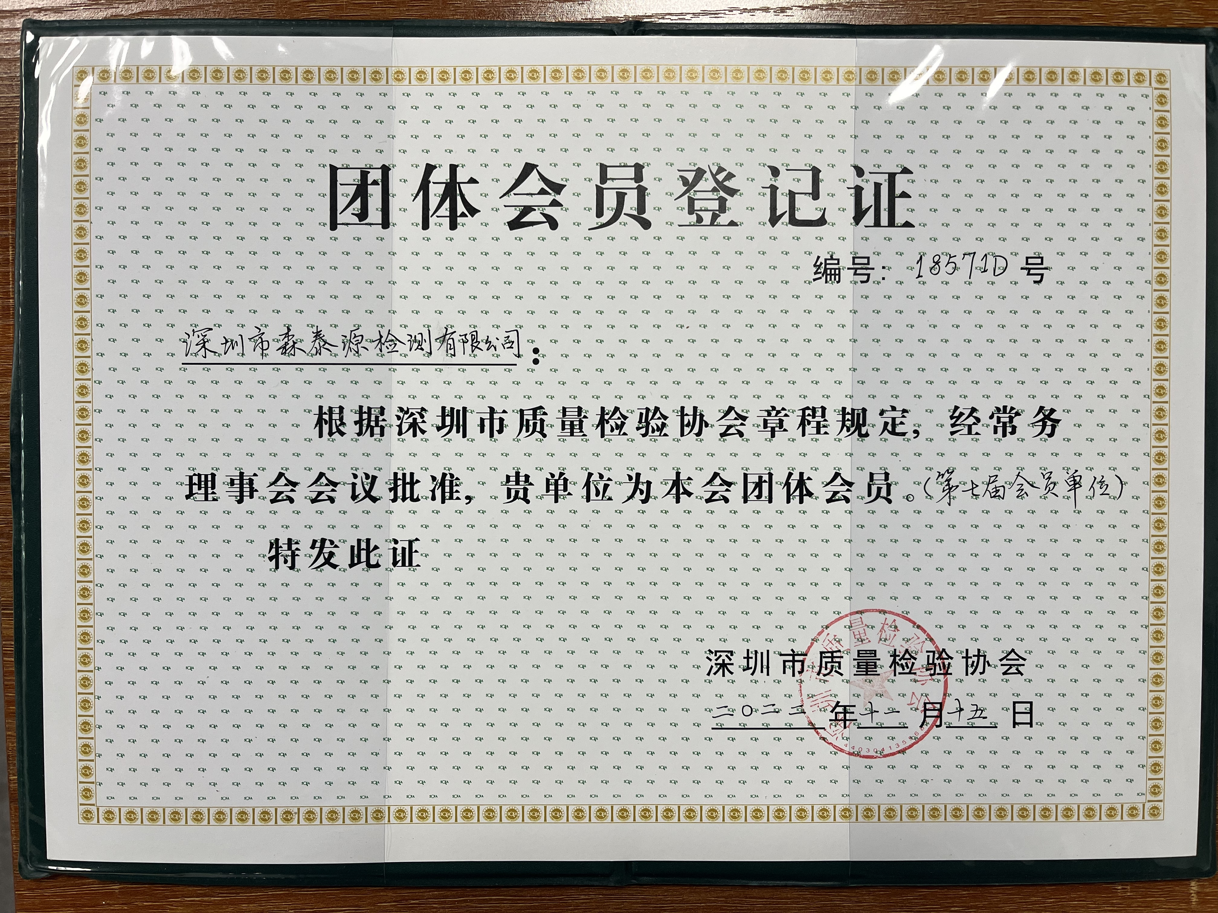 深圳質(zhì)量檢驗協(xié)會登記證