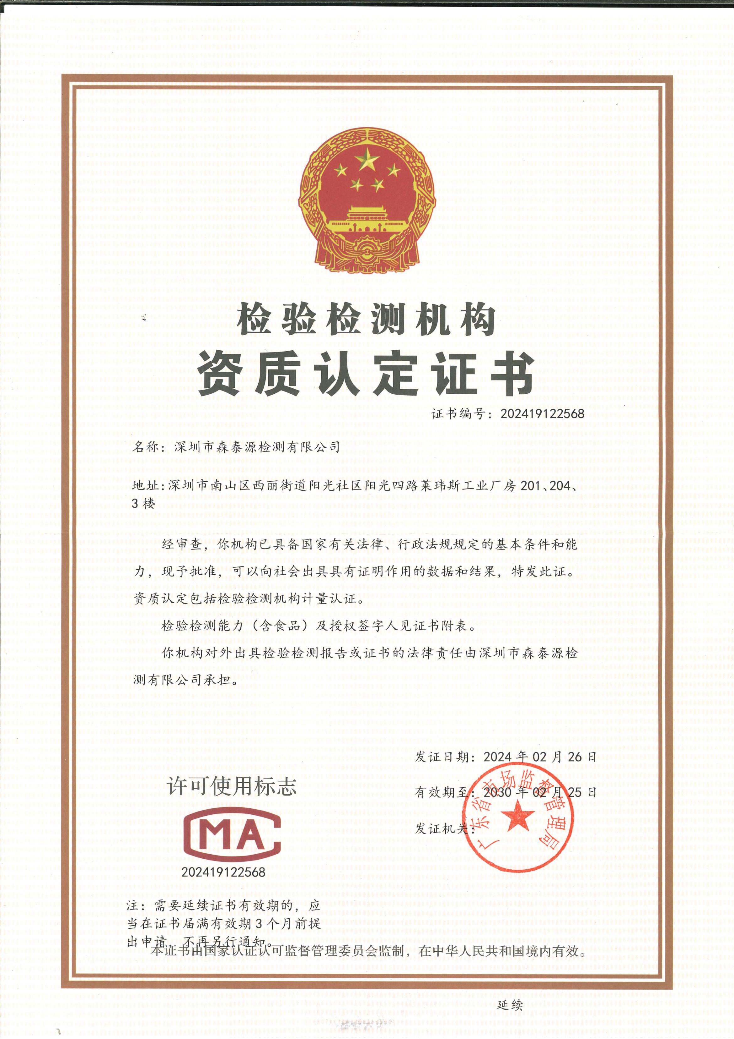 檢測CMA資質(zhì)證書